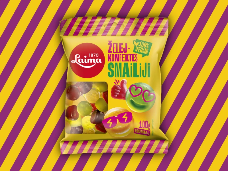 Jaunajām želejkonfektēm tapis jauns iepakojuma dizains. Vegāniskās želejkonfektes “Smailiji”‘ pieejamas ar tropisko augļu garšu. Sastāvā izmantoti sulu koncentrāti no īstiem augļiem.