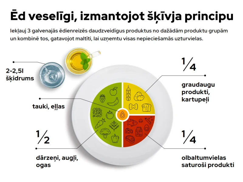 Veselīgā vienas dienas ēdienkartē ietilpst vismaz: